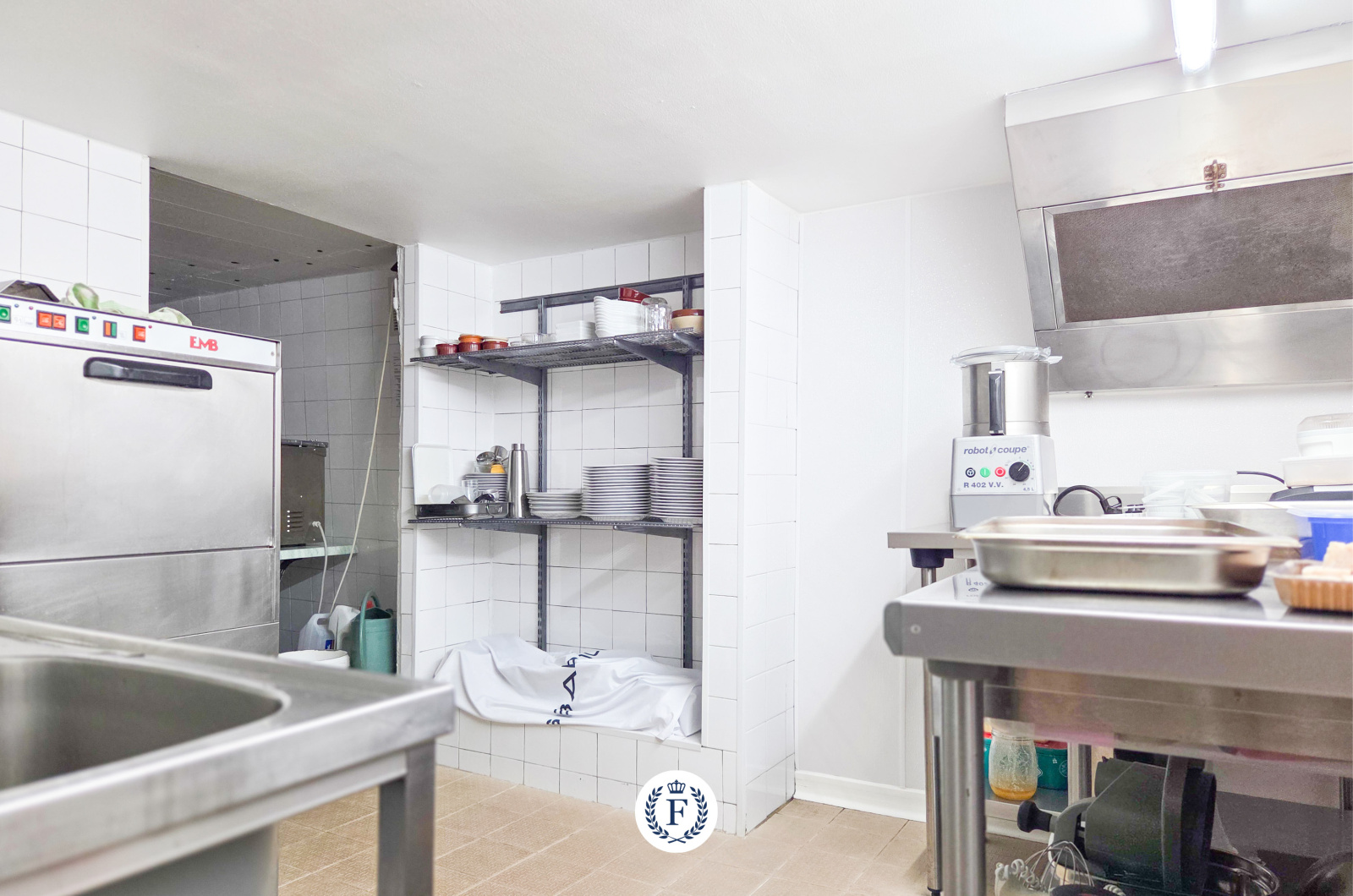 - Cuisine professionnelle entièrement équipée : piano 4 feux, mijoteuse, plancha, friteuse, four mixte, chambre froide, cellule sous vide…